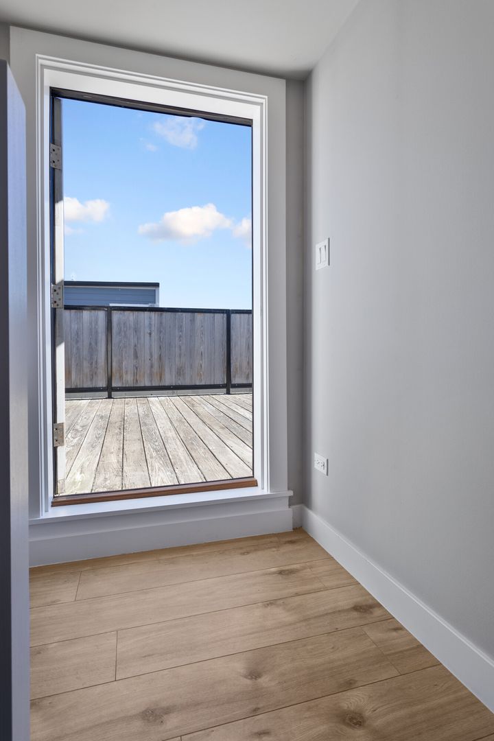 Luxury new construction apartment with large private roof deck and balcony now available in the Bell School District. This oversized 2 bedroom has lots of windows and natural light. High end finishes and open floorplan. Gourmet kitchen with modern cabinets with soft close drawers, quartz counter-tops, glass backsplash and stainless steel appliances. Hardwood floors throughout. Tall ceilings in this unit. King sized master suite with walk in closet, large second bedroom. In-unit washer and dryer. Private deck and one garage spot included. Pets welcome!